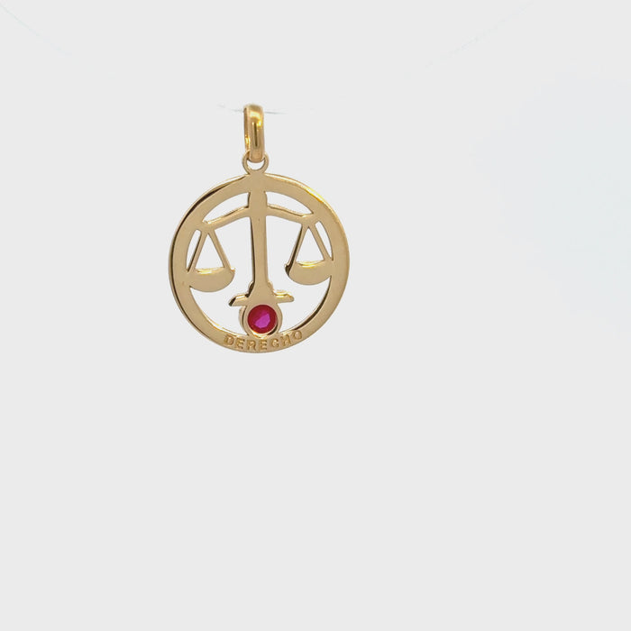 Este elegante colgante presenta el símbolo de la justicia, ideal para quienes valoran la equidad y la verdad. Con un acabado dorado brillante y un detalle en rojo, es una pieza que destaca en cualquier colección de joyería.